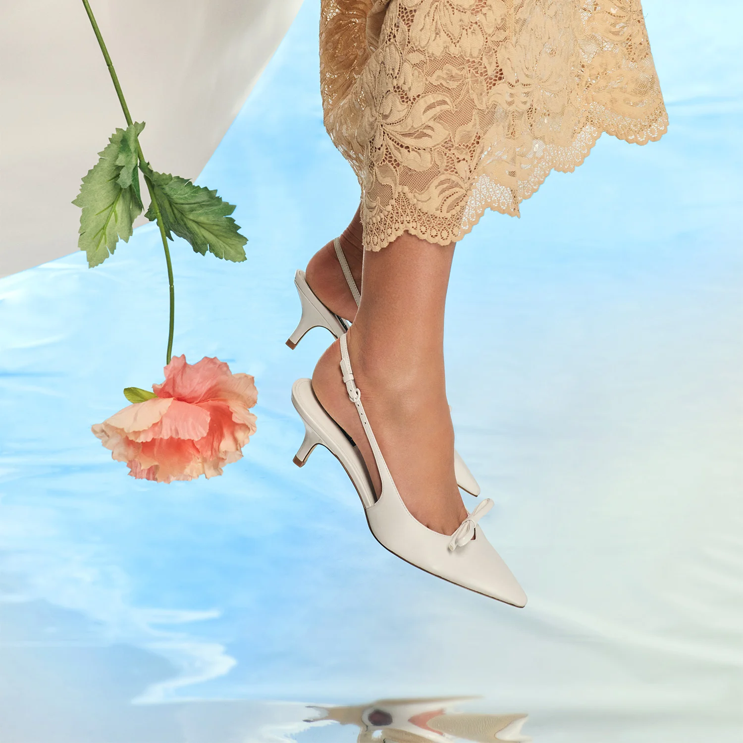 Lammel by Nine West is a pointed-toe slingback pump featuring a structured bow across the top for a refined finish. Set on a low kitten heel with a slim adjustable strap, it’s a sleek option for both everyday wear and dressier moments.